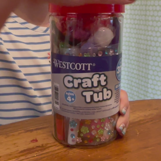 Unleash your imagination with Westcott’s Kids Craft Tub! Packed with 370 pieces of fun, it's perfect for hours of creative play. Kids have freedom to create their own designs! Craft for crafting at home, parties, or on-the-go. Adult supervision is recommended when children use scissors. Not intended for children under 4 years.